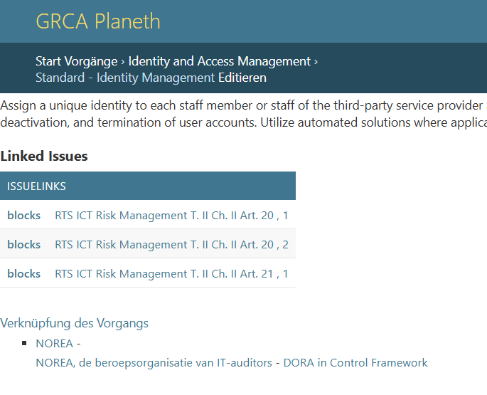 Von NOREA, de beroepsorganisatie van IT-auditors habe ich das DORA in Control Framework in das grca.planeth integrieren dürfen: